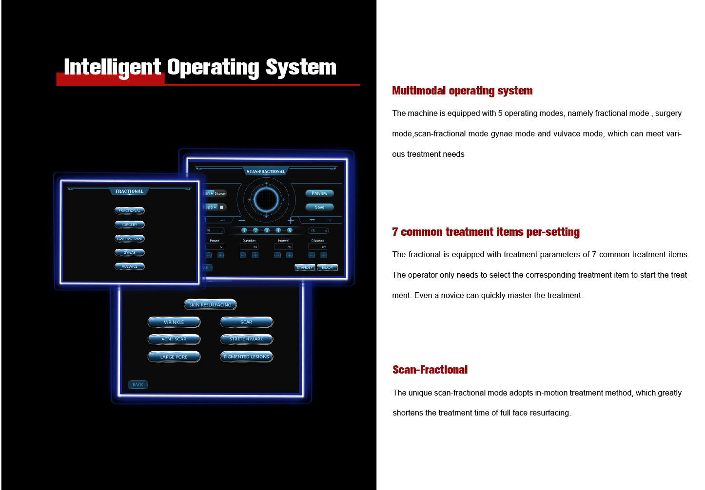 Fractional mode, gynaecological mode and surgery mode are all in one, multi-purpose machine.