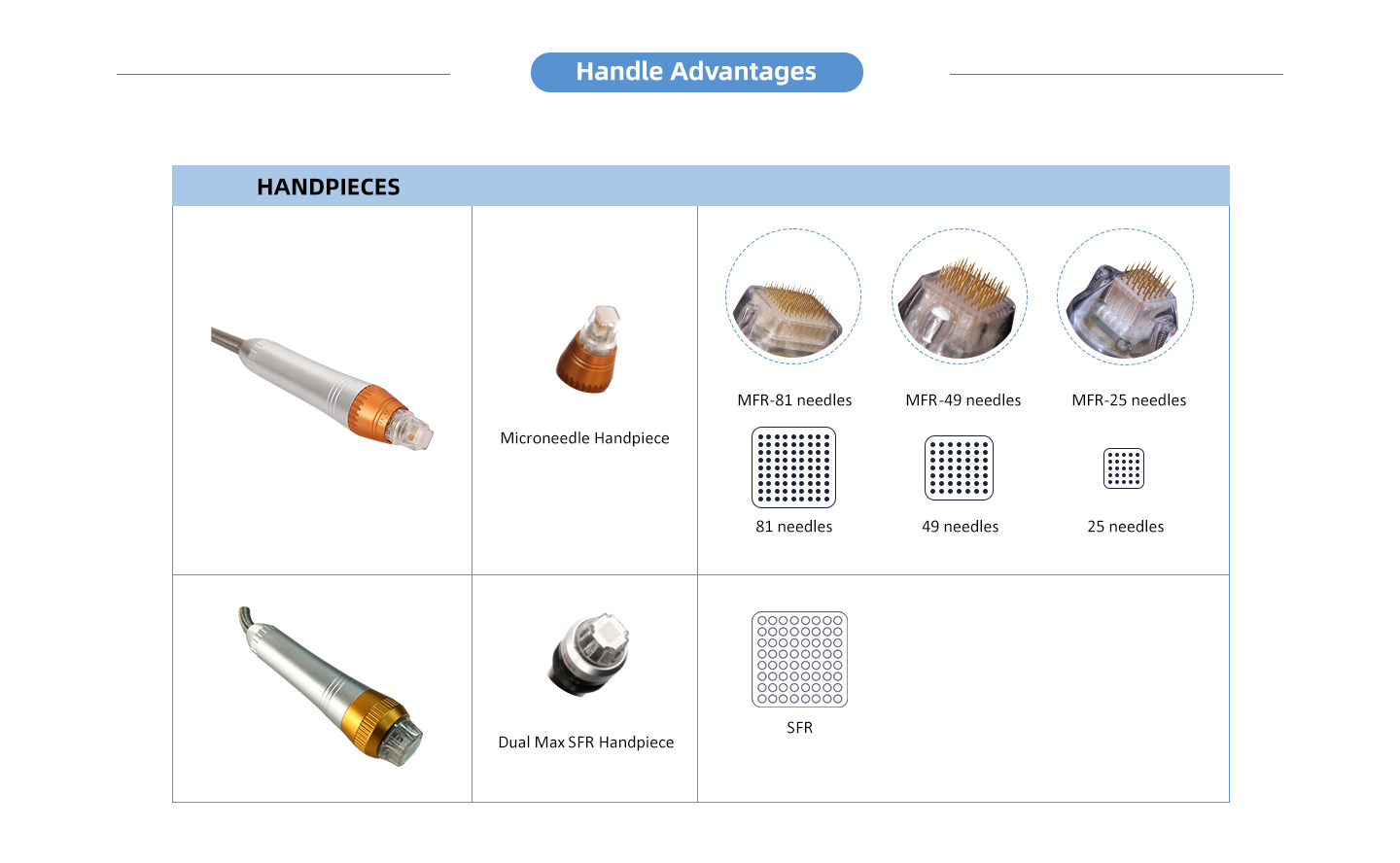 The penetration depth of 0.3-3mm is adjustable, and there are 3 types of needles with 25 needles, 49 needles and 81 needles