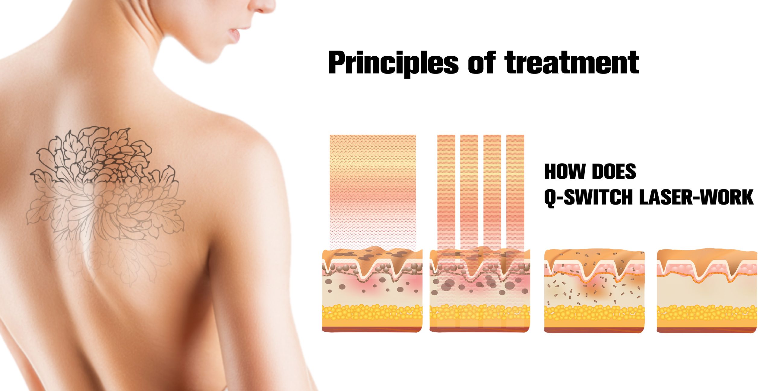 While breaking up the pigment particles, the laser does not cause any damage to the surrounding skin tissue, reducing the risk of damage to normal tissue and reducing the probability of hyperpigmentation.