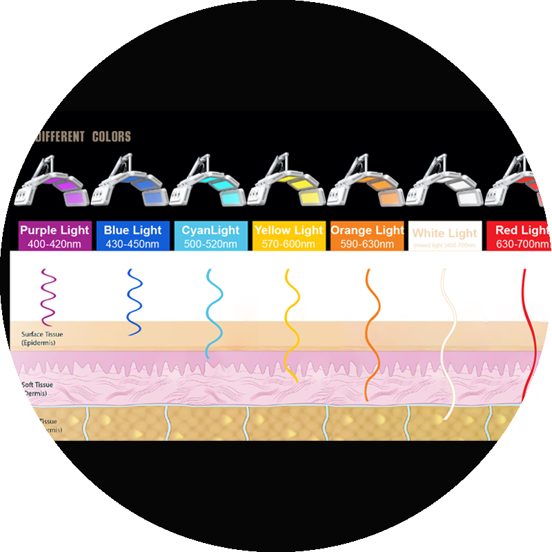 LED Instrument uses red, blue and yellow light with high-purity, high-power density to irradiate the skin, which can change the cell structure, kill bacteria, provide a suitable environment for new cells, enhance the production of new collagen elastin and collagen.